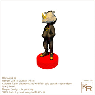 THE CLONE 01 a vibrant fusion of cartoons and wildlife in bold pop art sculpture form by Kaj Ransvi.